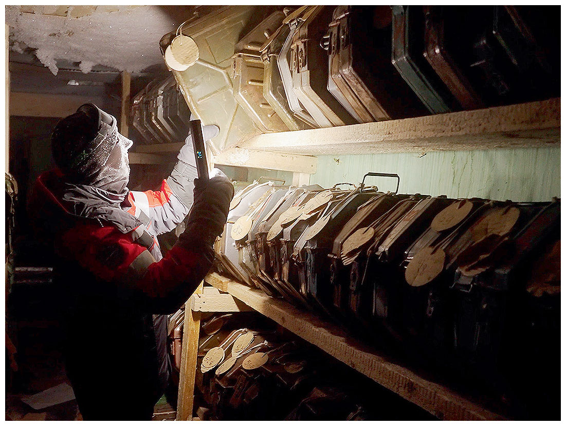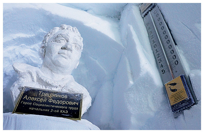 Если же кому-то захочется отправиться в более отдаленное прошлое, нужно отыскать вход в еще одно подснежное сооружение. Недалеко от букв, составляющих надпись «ВОСТОК РФ», и указателя-«елочки» с торчащими во все стороны света стрелками-направлениями находится лаз. Он ведет в помещения самой первой станции, открытой в середине прошлого века. Она тоже давным-давно ушла под снег. Внутрь можно «нырнуть» по отвесной лестнице. Серебряная изморозь оборачивает брошенные старые приборы: например, на коробках с советскими кинофильмами лежит аппарат для анестезии. Это место – портал в прошлое. Каждая вещь погружает в историю, связанную с судьбой станции Восток. Начнем с 1955 года.