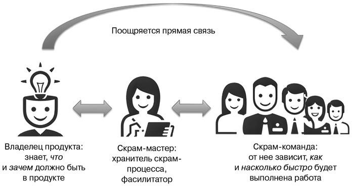 Этот раздел – краткий обзор трех ролей в скраме: скрам-команда, владелец продукта и скрам-мастер. Наша книга посвящена в основном роли скрам-мастера, но мы подробно разберем и остальные роли, исходя из их естественных взаимосвязей. Как вы, наверное, сами понимаете, людей обычно очень беспокоит, какова их роль в коллективе и где границы их зоны ответственности. Мы более предметно поговорим о ролях в скраме (и не только в скраме) в главе 9 «Формирование аджайл-организации».