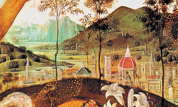 Филиппино Липпи. Панорама Флоренции. Фрагмент картины «Благовещение со св. Иосифом и св. Иоанном Крестителем». Ок. 1485 г. Национальная галерея Каподимонте. Неаполь.