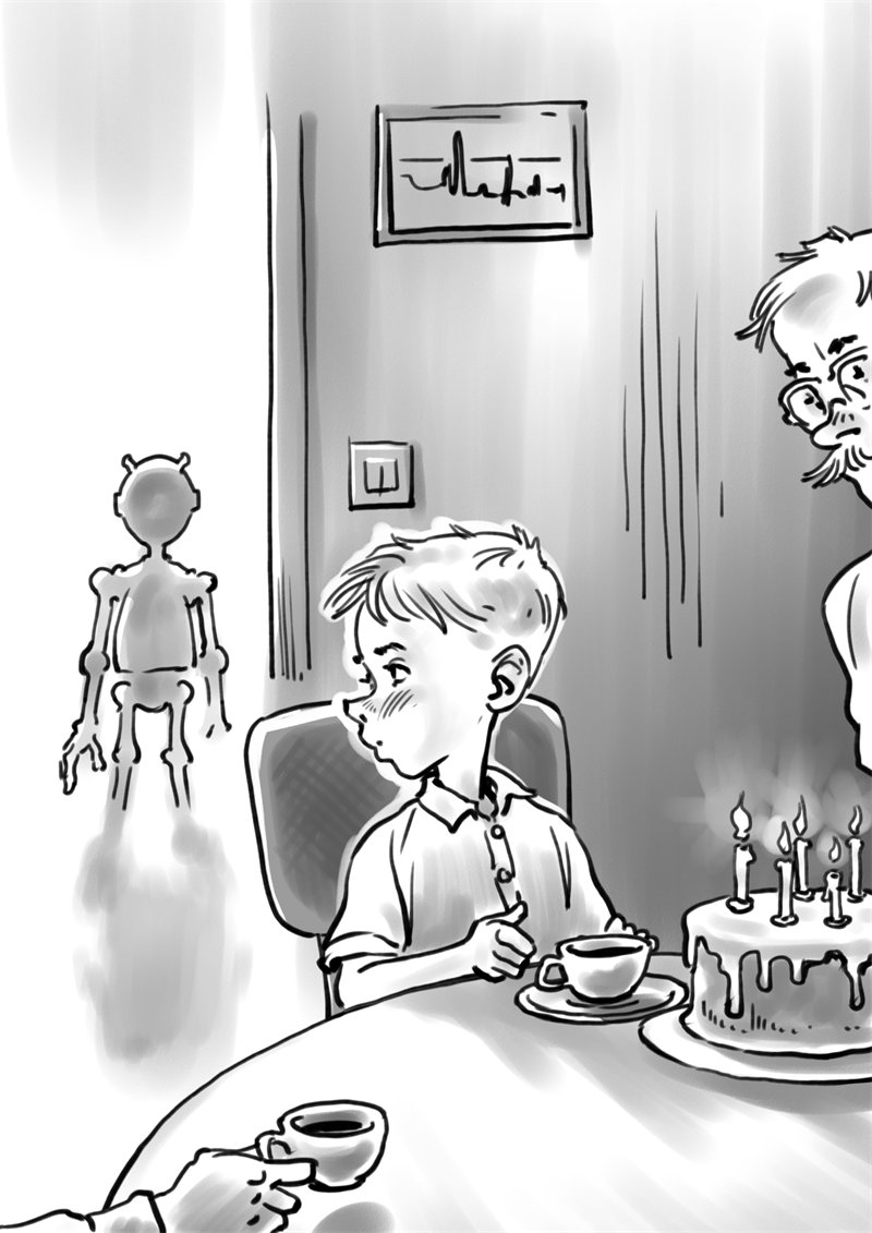 В дверь позвонили. Пришли бабушка с дедом и принесли подарки. Но ни машинка на пульте управления, ни пачка комиксов с интригующими разноцветными картинками не заинтересовали Стёпку. Как и фрукты с лимонадом, и торт на кухне в духовке.
