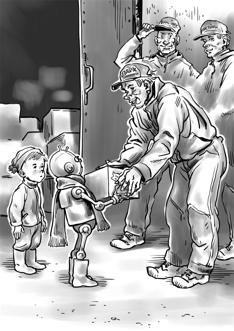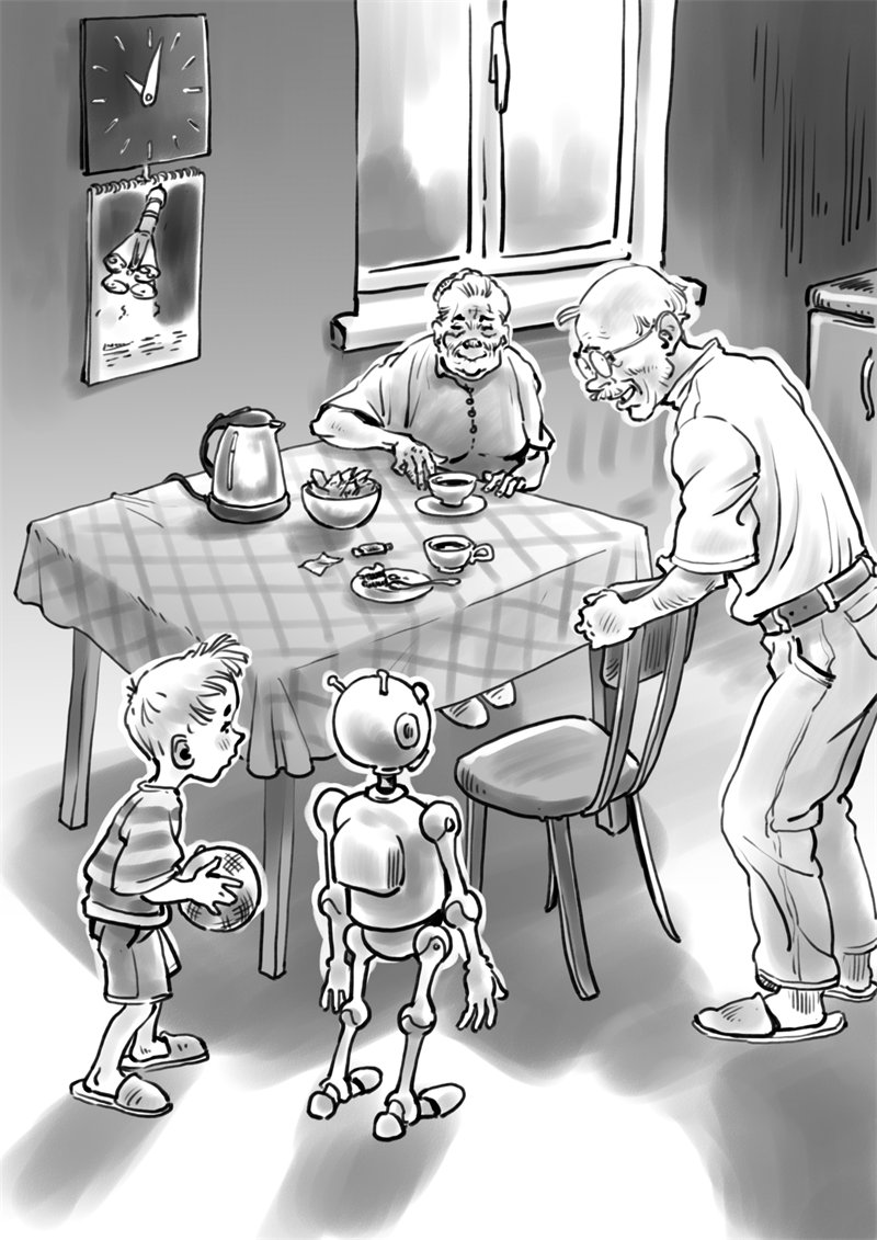 А Стёпка на робота всё смотрит, присматривается. Что ему дело до деда робота, когда новый робот перед глазами? С внуком поинтереснее.