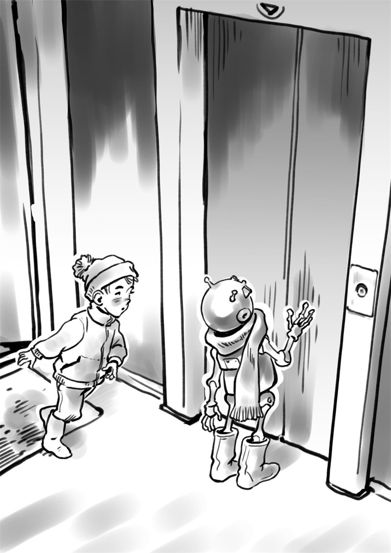 Когда же Стёпка снова примчался в свою комнату, робот уже осматривался. Он встретил мальчика у порога, просканировал большими стеклянными глазами и тут же спросил через динамик во рту: