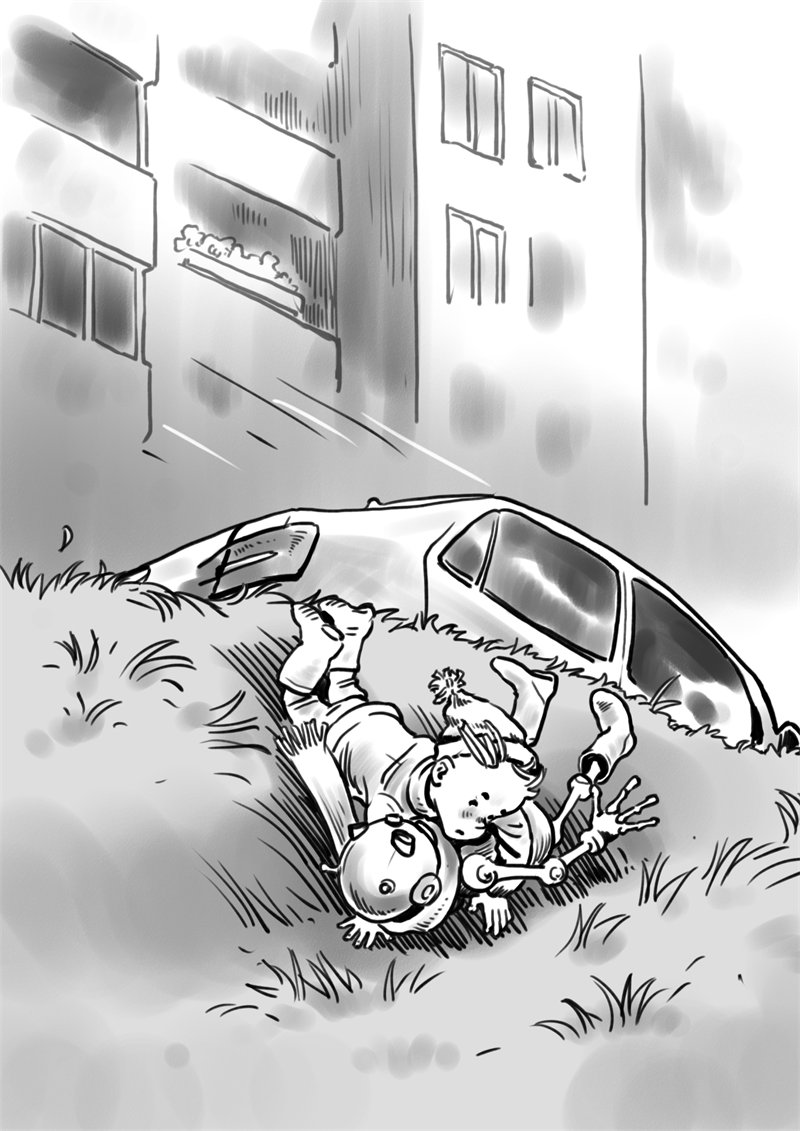 Стёпка с разбега прыгнул на робота, толкая его с дороги. Страх придал сил. Толкнул как следует. И в последний момент успел спасти.