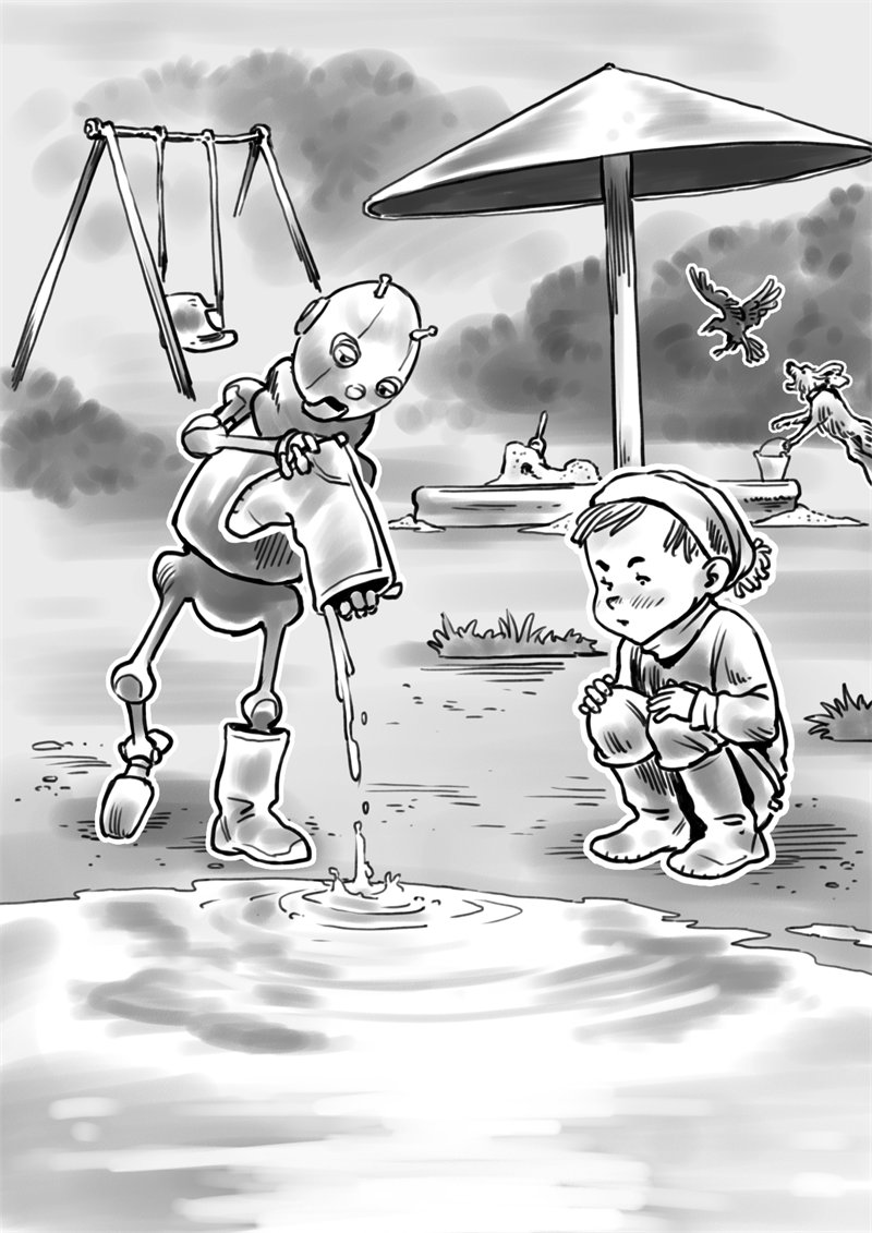 Робот вычерпал все лужи на детской площадке. И покачав головой, подтвердил: