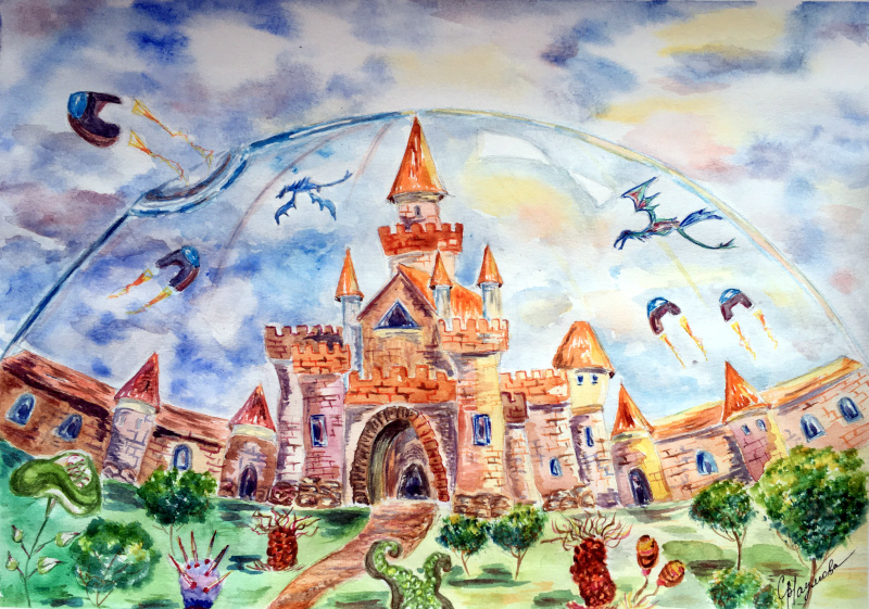 «Пятон» последний раз пыхнул пламенем из сопел и сел на личный космодром. Тот находился за замком – внушительным комплексом сооружений , в котором выделялись девять башен. Четыре маленькие для работников замка, четыре побольше для проживания важных гостей и приемов, и одна самая большая и высокая – для Правителя. На территории находились два огромных склада (которые заодно служили жилищем всех драконов замка), сразу за складами, за стеной Замка был космодром, а перед башней Правителя за площадью замка находился парадный вход.