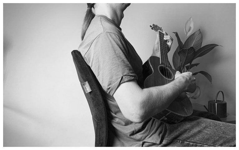 Правильной посадки для игры на укулеле не существует, есть удобная, то есть чтобы у исполнителя ничего нигде не жало и не зажималось. Сидеть с инструментом нужно так, чтобы чувствовать себя так же раскованно, как будто вы сидите без него. В первую очередь нужно обратить внимание на свое здоровье, то есть на ощущения в спине, плечах, руках и шее – с инструментом в руках все эти части нашего тела должны оставаться свободными, не зажиматься.