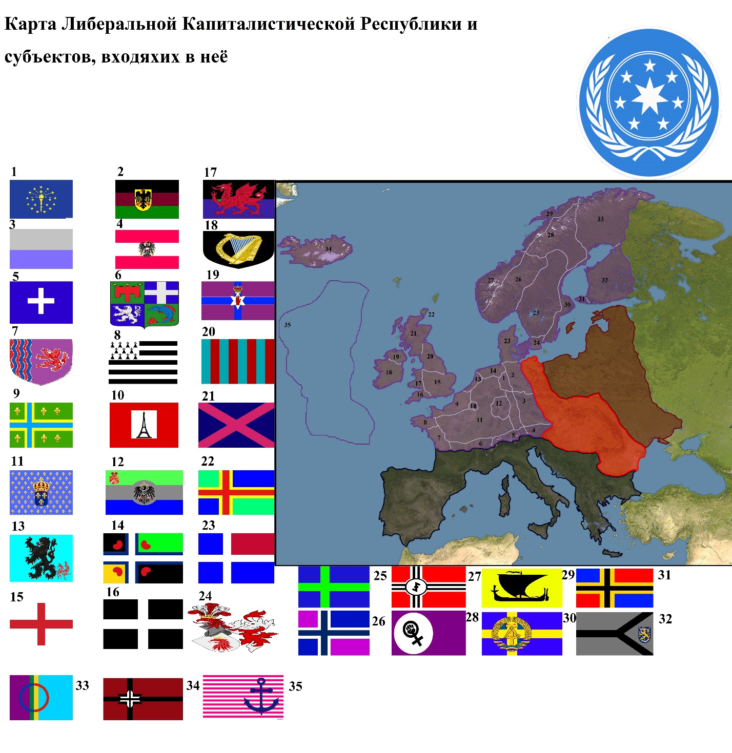 Рис. 1 Карта Либеральной Капиталистической Республики с входящими в неё странами.