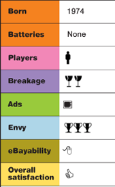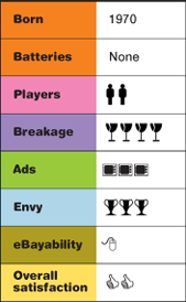 At least Buckaroo! was blessed with simple gameplay. Easily snapped plastic mouldings (ten-gallon hat, pitchfork, grappling hook, billycan and all that) are gently lowered in turn by players on to a 2D bucking bronco.1 As the ad explained: ‘Put on a shovel, try a pick–if the load’s too heavy the mule will kick.’ Words to live by, we think. Too much weight causes Buckaroo!’s hair-trigger to release, sending the aforementioned implements flying across the living room, under the settee, into the dog’s mouth and so on.2