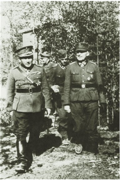 Финский генерал Ялмар Сииласвуо вместе с генералом СС Кляйнхайстеркампом и немецкими офицерами. Отношения между союзниками были неважными