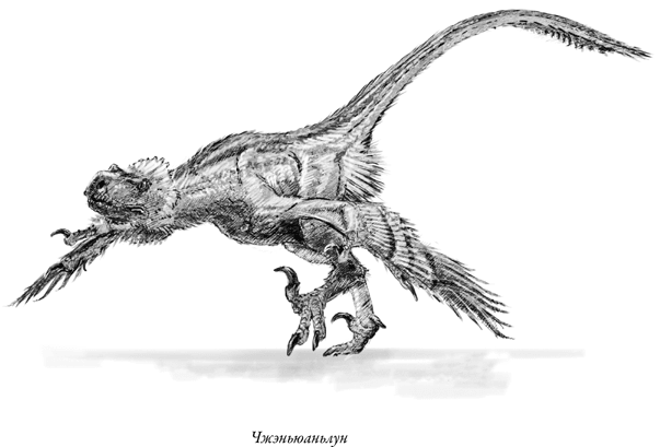 Чжэньюаньлун отличается от динозавров, о которых мне рассказывали в школе еще до того, как я стал ученым. Меня учили, что динозавры были огромными, чешуйчатыми, тупыми чудовищами, они были плохо приспособлены к окружающей среде и влачили жалкое существование, ожидая, когда придет пора вымирать. Ошибка эволюции. Тупиковое ответвление истории жизни. Примитивные создания, которые появились и исчезли задолго до людей, в первозданном мире, совсем не похожем на наш, практически на чужой планете. Динозавры воспринимались как диковинки, на которых можно смотреть в музее, или киномонстрами из кошмарных снов, или детским увлечением, но они почти не имели отношения к современности и были недостойны сколько-нибудь серьезного изучения.