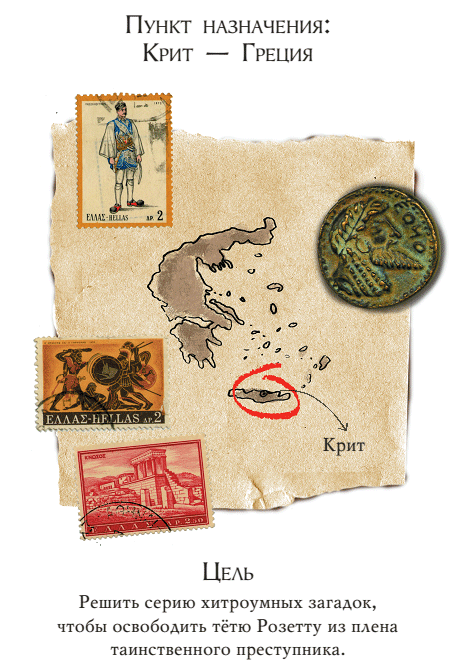 Десять дней назад Розетта Мистери прислала Агате письмо с приглашением на международную конференцию, посвящённую минойской цивилизации. Тётя Розетта, выдающийся учёный с мировым именем, исследовала и расшифровывала мёртвые языки. Зная, что её лондонская племянница Агата тоже неравнодушна к подобным загадкам, тётя решила позвать девочку на предстоящую конференцию, где собиралась поделиться своими сенсационными открытиями на тему критского иероглифического письма.