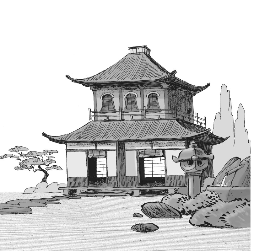 Обиженно фыркнув, Ларри пересёк сад камней и приблизился к деревянной пагоде.