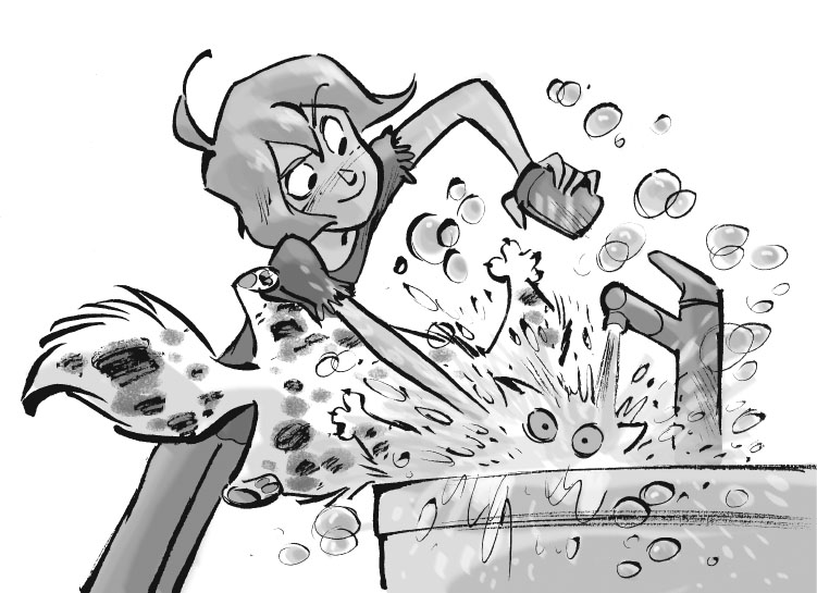 Несколько секунд никто не мог произнести ни звука. Затем Агата схватила кусок мыла, открыла кран и сунула кота под струю воды. Брызги полетели во все стороны.