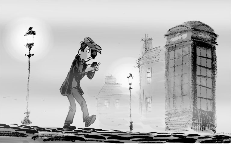 Ларри огляделся по сторонам, пытаясь отыскать какой-нибудь ориентир. Он скривил лицо: уличные фонари смотрели на него сквозь дымку, словно жёлтые глаза, а проезжающие машины очертаниями напоминали старинные экипажи. Казалось, город как по волшебству вернулся в конец девятнадцатого века, в Викторианскую эпоху, когда вёл свои знаменитые расследования Шерлок Холмс.