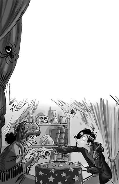 Он сделал глубокий вдох и вошёл. Потребовалось несколько секунд, прежде чем его глаза привыкли к полумраку. Внутри всё было украшено так, словно здесь готовились к Хэллоуину: с потолка свисали резиновые летучие мыши и кружевная паутина, а на стеллажах, освещённых свечами, виднелись склянки с мутными жидкостями. Мадам Зельда сидела в глубине шатра. На голове гадалки был тюрбан, закрывавший уши, на запястьях переливались тяжёлые браслеты.