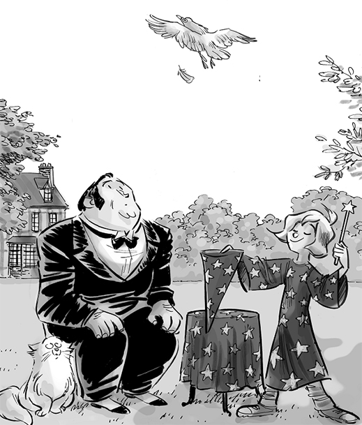 На улице было тепло, и потому Агата Мистери решила провести представление на лужайке возле Мистери-Хаус – викторианского особняка, в котором обитали многие поколения её семьи. Накрыв столешницу тёмно-синим покрывалом с рисунком из золотых звёзд и облачившись в мантию и остроконечную шляпу такой же расцветки, девочка взмахнула над головой деревянной палочкой и провозгласила: