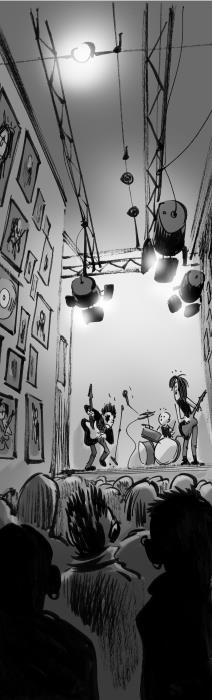 Участники «Хаг»[2] (так называлась эта группа) ждали своего часа в гримёрке, которая на самом деле была всего лишь кладовкой сбоку от основного зала кафе.