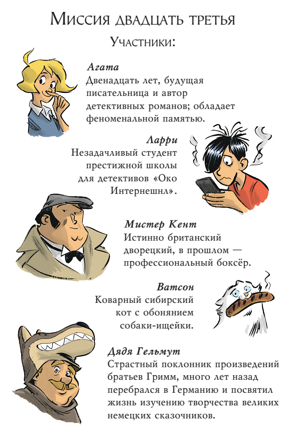 Ровно в десять часов утра следующего дня Агата, Ларри, мистер Кент, дядя Гельмут и Ватсон уже стояли на пороге «Фауст-отеля» – элегантного здания в стиле фахверк[4], расположенно го в одном из самых фешенебельных кварталов Берлина. На окнах висели узорчатые занавеси, а у противоположной от входа стены темнел внушительных размеров камин.