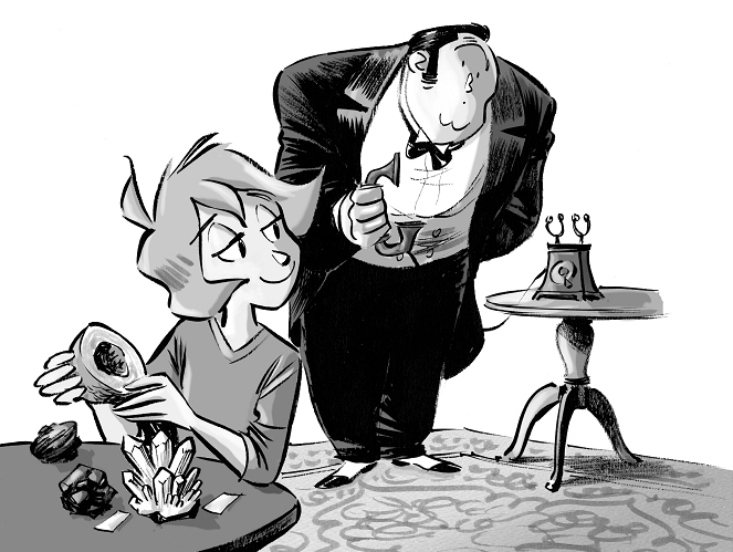 Ватсон развернулся и задел аметист хвостом. Камень полетел на пол… но мистер Кент, расторопный и немногословный дворецкий Мистери-Хаус, поймал его и вернул на место.