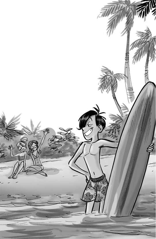 Две девушки, принимавшие солнечные ванны, решили подзадорить юного сёрфингиста. Ларри глубоко вдохнул, приосанился и многообещающе взглянул на незнакомок, после чего поставил доску на воду и двинулся навстречу первой волне.