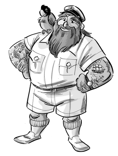 Длиннобородый великан стоял, уперев в бока могучие руки, бронзовые от загара и украшенные татуировками на морскую тематику. Улисс щеголял в идеально отглаженной форме шкипера, кипенная белизна которой составляла контраст яркому красно-сине-зелёному оперению большого попугая, устроившегося на плече моряка.