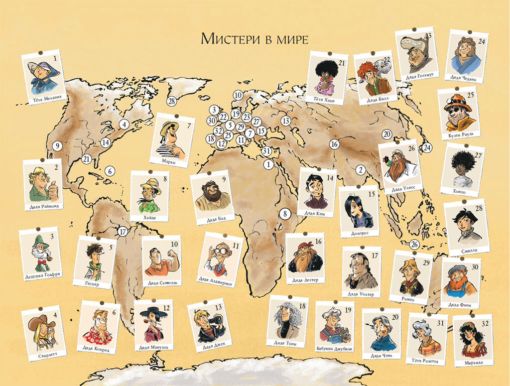 Семья Мистери была необычайно многочисленной, и её члены, каждый по-своему уникальный, проживали в самых разных уголках планеты. Воссоздать семейное древо представлялось почти невыполнимой затеей. Но Агата всё же решила рискнуть: девочка скрупулёзно размещала фотографии и сведения о тех Мистери, с которыми была знакома, на огромной карте, висящей в гостиной.