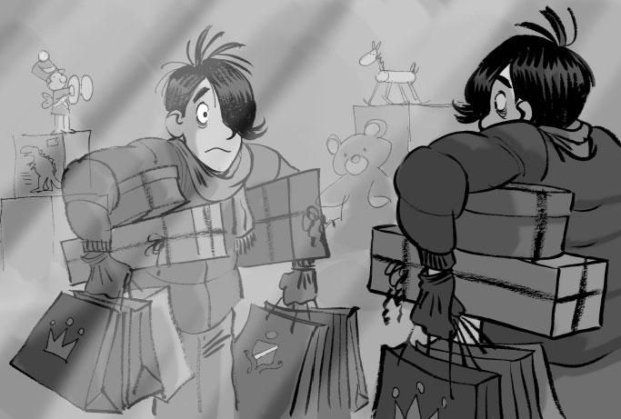 – Так, снежный спрей купил, – перечислял он, – шарики, гирлянды, лампочки купил. А ведь ещё где-то надо найти чулки для подарков, колокольчики и карамельные палочки… Нет, это никогда не закончится!