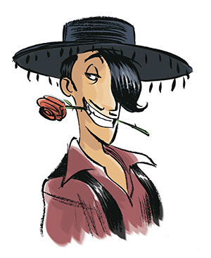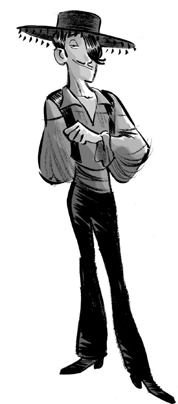 Мануэль Мистери ожидал их при входе в терминал. Лондонцы без труда узнали его, потому что этот тридцатипятилетний мужчина был взрослым двойником Ларри. Та же сухощавая фигура, та же копна чёрных-пречёрных волос. Если не считать роста, дядя Мануэль отличался от племянника только загаром и тонкими усиками. Он щеголял в черешнево-красном костюме: атласная рубашка с треугольным вырезом на груди, пояс и блестящие кожаные сапоги. На голове он носил плоскую шляпу с бахромой. Для завершения идеального облика танцовщика фламенко не хватало только розы в зубах.