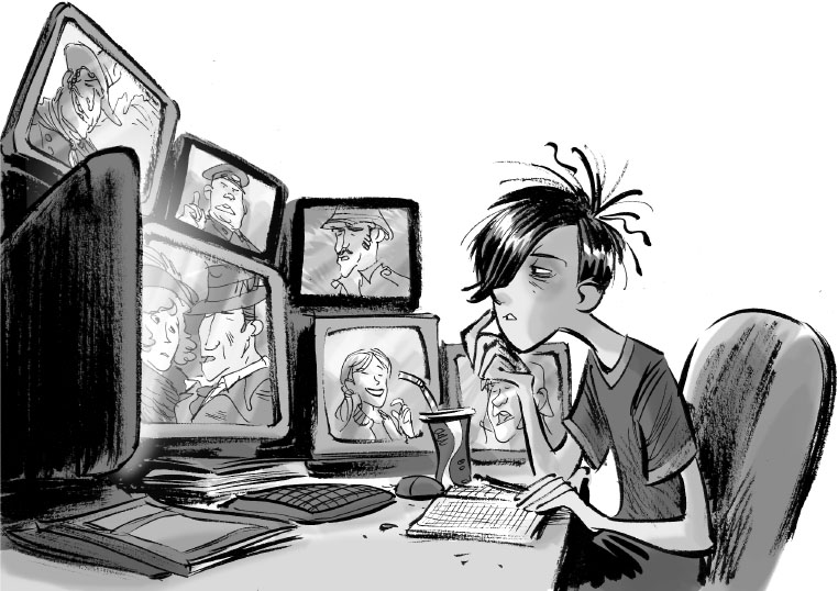 Сегодня его ожидало поистине трудное испытание – вот почему этой ночью он не ложился спать. Всю предыдущую неделю он не вылезал из-за компьютера, сражаясь в онлайн-видеоигры со сверстниками из разных уголков мира, а когда спохватился, до экзамена оставалось меньше суток. Юноша тотчас бросился навёрстывать упущенное.