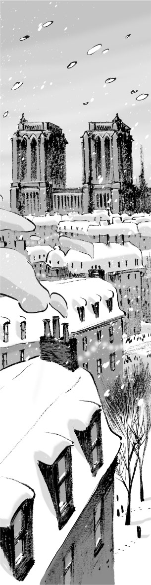 В мастерской вновь воцарилась тишина, и Агата повернулась к узкому окошку, чтобы понаблюдать за городской жизнью. Повсюду уже горели рождественские гирлянды, прохожие шагали торопливо, спеша укрыться от метели. В отдалении виднелся силуэт собора Парижской Богоматери, загадочный и блистательный в своём готическом облике. В голове Агаты тотчас вырисовались сцены романа, действие которого должно было разворачиваться здесь, в Париже, во времена строительства собора. Закрученная интрига преступлений и заговоров…