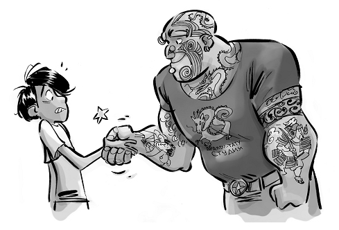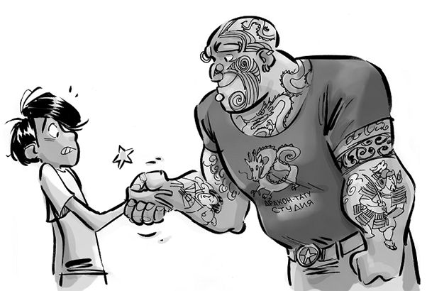 – Добро пожаловать, дружище! – прогремел чей-то голос, отвлекая его от мечтаний. Из-за занавески, разрисованной причудливыми узорами, появился владелец студии – Марли Дракон, высокий человек со стальными мускулами, всё тело которого было покрыто татуировками. Оглядев юношу с головы до ног, он пожал ему руку.