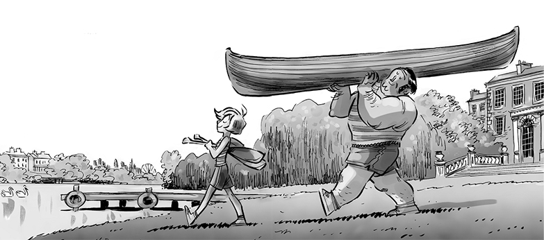 – Мы почти у цели, – провозгласил мистер Кент. Рослый и широкоплечий дворецкий шагал по идеально ухоженной лужайке к реке и нёс на плече тяжёлую байдарку так легко, словно это был бумажный кораблик. Сегодня мистер Кент сменил свой безупречный смокинг на облегающую полосатую майку, смешные трикотажные шорты и парусиновые туфли.