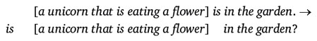 Хомский думал, что, если дети обладают встроенной языковой логикой, они смогут правильно задать вопрос к предложению с двумя вспомогательными глаголами, даже впервые с ним сталкиваясь. Это должно быть так, несмотря на то что неверное правило, согласно которому нужно при чтении рассматривать предложение как линейную цепочку слов, устроено проще и, вероятно, должно легче запоминаться. Это должно быть так, даже если предложения, благодаря которым можно понять, что не работает линейное правило, а работает правило, опирающееся на структуру предложения (то есть предложений, в которых второй вспомогательный глагол помещен внутрь группы подлежащего), настолько редки, что вовсе не существуют в материнском языке. Абсолютно точно ни один ребенок, который учится говорить на английском языке, не слышал от своей матери Is the doggie that is eating the flower in the garden? 'В саду ли собачка, которая ест цветок'. Для Хомского рассуждения такого рода – он их называет «аргументом от бедности стимула» – главное доказательство врожденного характера базовых языковых структур.