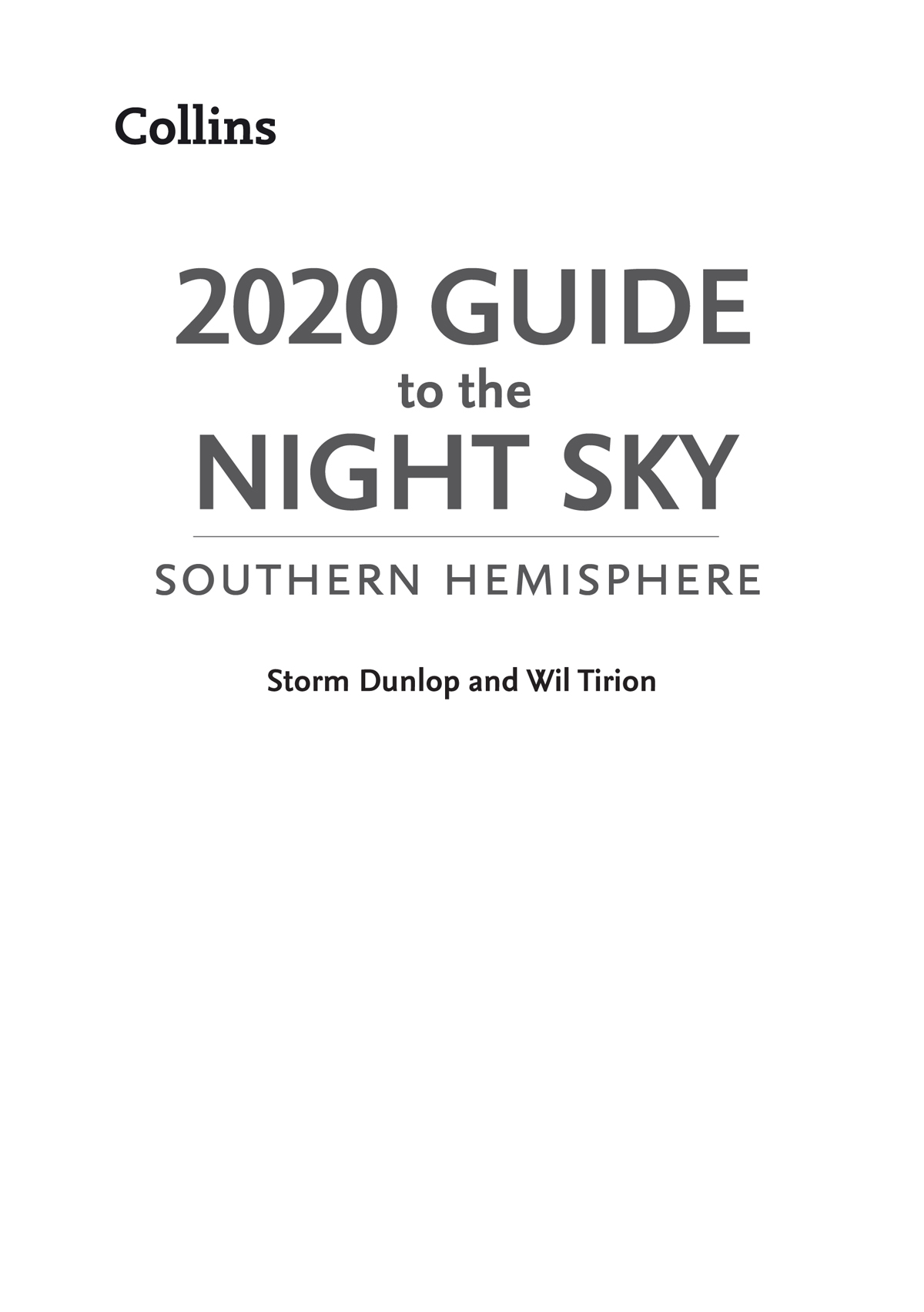 All the objects in the sky (including the Sun, Moon and stars) appear to lie at some indeterminate distance on a large sphere, centred on the Earth. This celestial sphere has various reference points and features that are related to those of the Earth. If the Earth’s rotational axis is extended, for example, it points to the North and South Celestial Poles, which are thus in line with the North and South Poles on Earth. Similarly, the celestial equator lies in the same plane as the Earth’s equator, and divides the sky into northern and southern hemispheres. Because this Guide is written for use in the southern hemisphere, the area of the sky that it describes includes the whole of the southern celestial hemisphere and those portions of the northern that become visible at different times of the year. Stars in the far north, however, remain invisible throughout the year, and are not included.