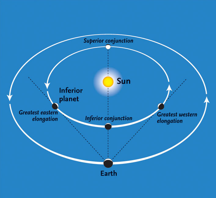 The inferior planets are most readily seen at eastern or western elongation, when their angular distance from the Sun is greatest. For superior planets, they are best seen at opposition, when they are directly opposite the Sun in the sky, and cross the meridian at local midnight.