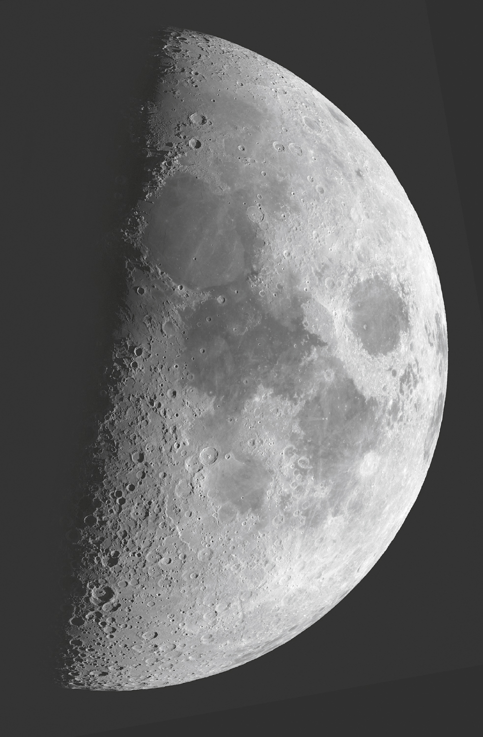 The monthly pages include diagrams showing the phase of the Moon for every day of the month, and also indicate the day in the lunation (or age of the Moon), which begins at New Moon. The diagrams showing the Moon’s phase are repeated for southern-hemisphere observers who will see the Moon, south up. Although the main features of the surface – the light highlands and the dark maria (seas) – may be seen with the naked eye, far more features may be detected with the use of binoculars or any telescope. The many craters are best seen when they are close to the terminator (the boundary between the illuminated and the non-illuminated areas of the surface), when the Sun rises or sets over any particular region of the Moon and the crater walls or central peaks cast strong shadows. Most features become difficult to see at Full Moon, although this is the best time to see the bright ray systems surrounding certain craters. Accompanying the Moon map on the following pages is a list of prominent features, including the days in the lunation when features are normally close to the terminator and thus easiest to see. A few bright features such as Linné and Proclus, visible when well illuminated, are also listed. One feature, Rupes Recta (the Straight Wall) is readily visible only when it casts a shadow with light from the east, appearing as a light line when illuminated from the opposite direction.