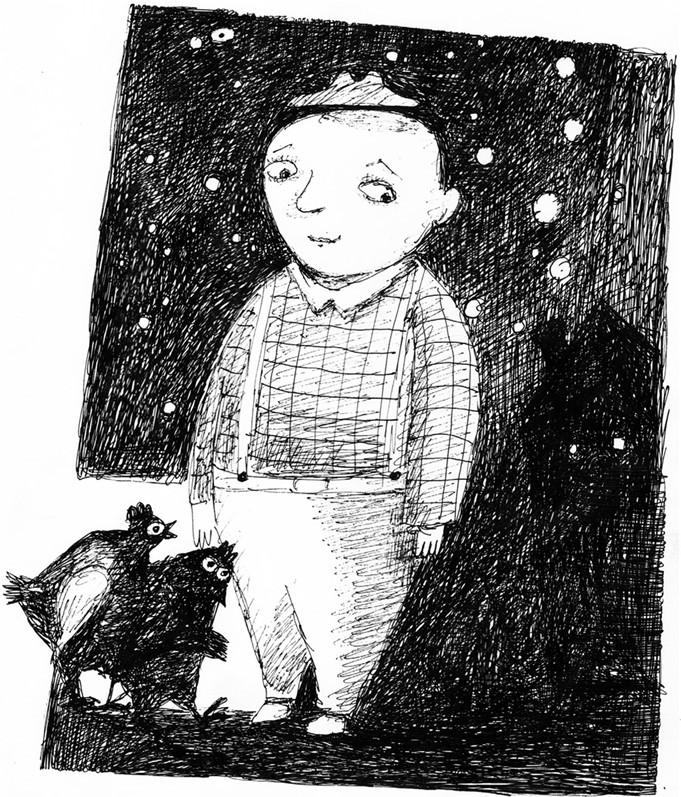 Но как-то получилось, что на несколько часов им пришлось оставить меня одного – не знаю причину, но предупредили и попросили навроде как-то постараться себя хорошо вести. Я начал стараться. Тем более что был уже трёхлетним и о себе много чего понимал. Например, что если хочу есть, то когда поем, потом не хочу. И что ем вообще-то недолго. Так размышляя, сидел за кухонным столом и смотрел в окно на огород. Было, конечно, скучновато, но сидел смирно, вообще не рыпался: не гонялся за кошкой и не играл в солдатики. Под окном возились три курицы, они чего-то разгребали лапками и искали в этом еду. Курицы были голодными, и их нужно было покормить. Ведь когда я хотел есть, старшие меня кормили, правильно? Теперь в доме только я за старшего. Но чем кормить куриц – не знал.