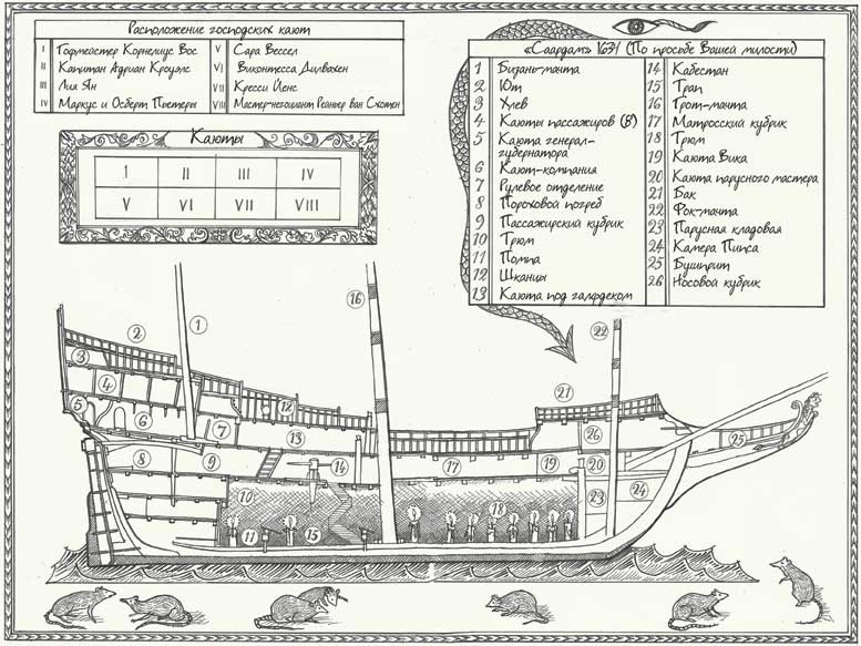 – Лейтенант Хейс, я – капитан стражи Якоб Дрехт. – Он смахнул муху с лица. – Отвечаю за охрану семейства генерал-губернатора. В том числе и на борту корабля. – Дрехт обратился к сопровождающим его мушкетерам: – Живо в лодку! Генерал-губернатор распорядился, чтобы мистера Пипса разместили на борту «Саардама» раньше, чем…