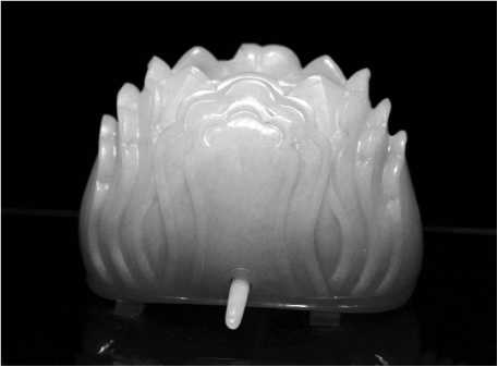 Гуань – это древний мужской головной убор. Лепестки лотоса на нем выгравированы симметрично друг другу, небольшое круглое отверстие в нижней части убора соответствует другому в задней его части и предназначено для специальной булавки из белой яшмы. Все линии изделия плавны и округлы, его принято тщательно полировать
