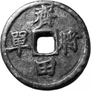 Медная монета для «Игры в скачки» с надписью: «Генерал царства Ци Тянь Дань». Такие монеты появились при императорском дворе в эпоху Тан и стали популярны в эпоху Сун. С ними развлекались и высокопоставленные чиновники, и простой народ. В игре участвовали от двух до пяти человек, монеты были с квадратными прорезями, на них чеканили имена знаменитых генералов и лучших скакунов. Военные сражения, разыгрываемые на монетах, не могли передать атмосферу настоящей битвы, однако с их помощью люди многое узнавали об истории и культуре Китая