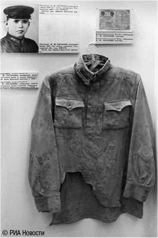 Белорусский государственный музей истории Великой Отечественной Войны в Минске. Открытие состоялось 7 ноября 1944 года. Прострелянная гимнастерка лейтенанта А.Ф. Наганова. Погиб при обороне Брестской крепости.