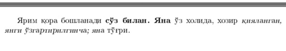 Yarim qoraytirilgan shrift bilan faqat «бу» so‘zi yozilib, undan keyingilari joriy shrif bilan yozilgan.