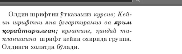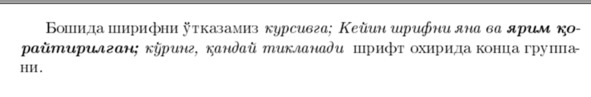 \usepackage [T2A] {fontenc} %% shriftni ko’chirishsiz qo’shish