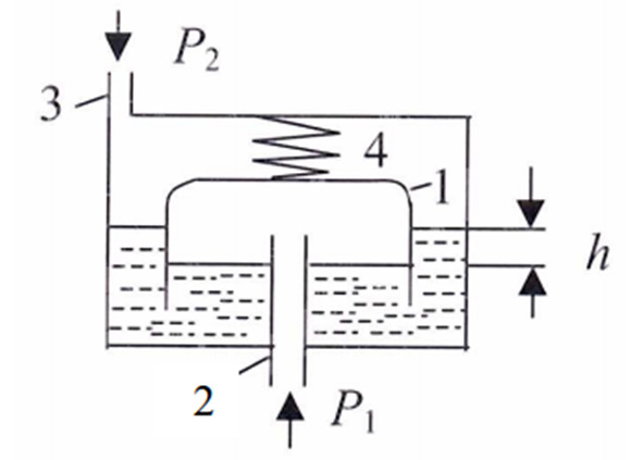 Tebranuvchi (kolokolniy) differensial bosim o‘lchagichining ishlash prinsipi rasm 6.19 da keltirilgan. Transformator moyiga qisman botirilgan yurgich 1 qurilmaning sezgir elementi hisoblanadi. Tebranuvchi ichiga naycha o‘rnatilgan 2, bu orqali bosim P1 ta’minlanadi. Bosim P2 Tebranuvchi ustidagi 3 naycha orqali beriladi. Tebranuvchi 4- prujina bilan mahkamlangan.
