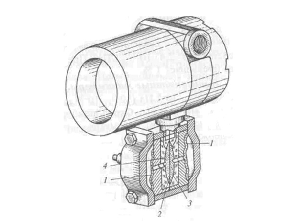 6.38 – rasm. Sig‘imli bosim farqini o‘lchash datchigi. 1- kameralar membranalari, 2- sezuvchi element, 3,4- kondensatorni qo‘zg‘almas qoplamlari.