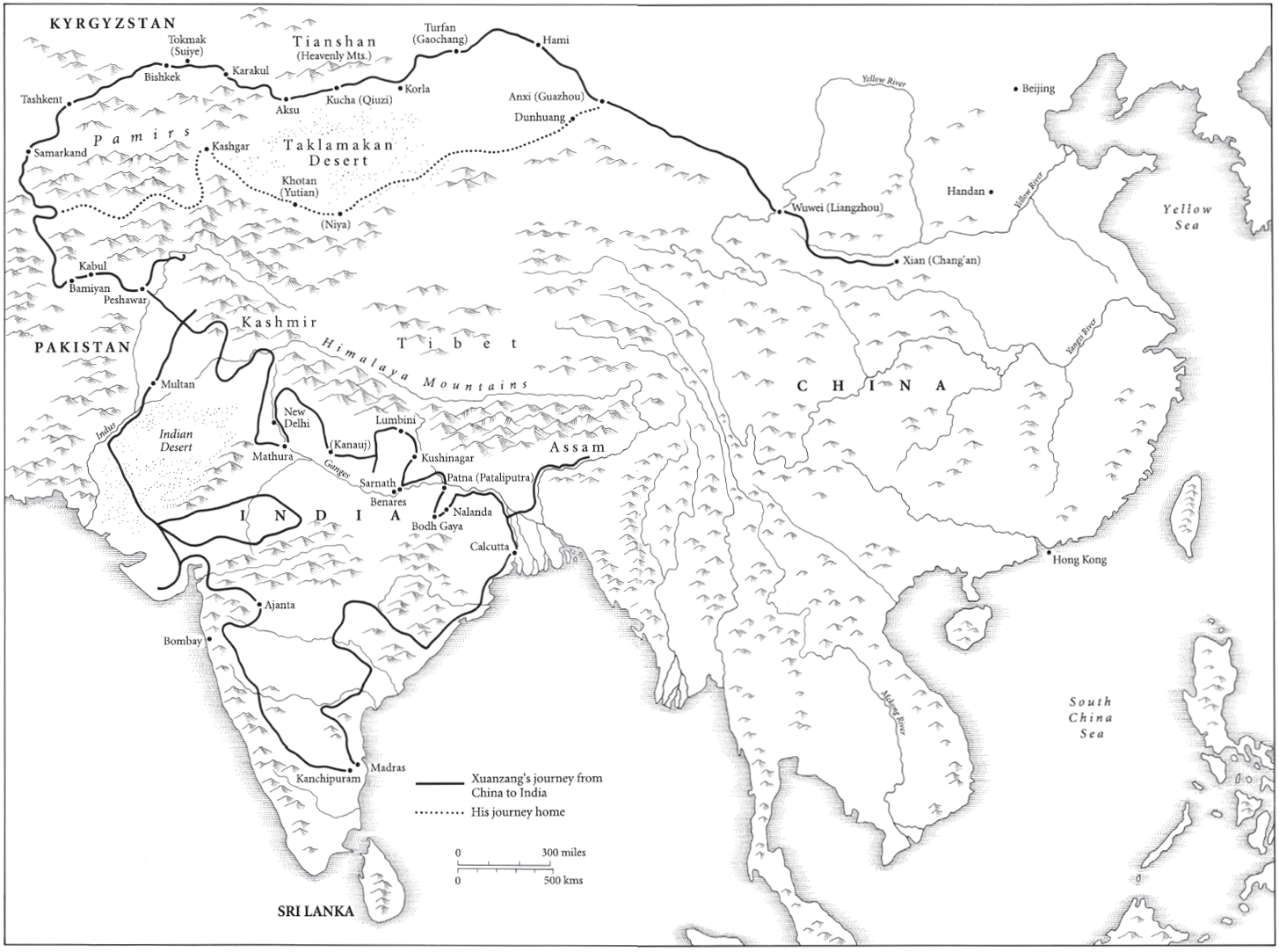 Xuanzang, the subject of this book, could not have completed his epic journey without the help he received from kings, emperors and princes. I too have to thank a large number of people who made my journey possible; they helped me practically and intellectually. They include R. C. Agrawal, Daub Ali, Swati Barathe, Vasanta Bharucha, Bodhisen, Peter Coleridge, Joe Cribb, Mick Csaky, G. P. Deshpande, Toby Eady, Elizabeth Errington, Katie Espiner, Anthony Fitzherbert, Madhu Ghose, Richard Gombrich, Ruchira Gupta, Sue Hamilton, Hu Ji, Prem Jha, M. C. Joshi, Shah Nazar Khan, Robert Knox, Luo Feng, Philip Lutgendorf, Ma Shichang, Manidhamma, Robert Mason, Jean McNeil, Venerable Miaohua, Yumiko and Paul Mitchell, Vivek Nanda, Lolita Nehru, John Pell, M. C. Ranganathan, Harapasad Ray, Gowher Rizvi, Virginia Shapiro, Sarah Shaw, Romila Thapar, Judy and John Thompson, Uma Waide, Wang Qihan, Roderick Whitfield, Sally Wriggins, Zhang Jianhua, and many other friends and experts in China and elsewhere too numerous to list. I must single out Sally Wriggins, whose academic study of Xuanzang has been invaluable.