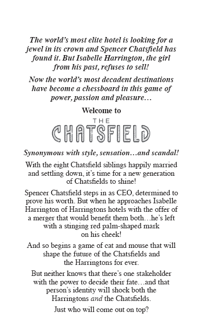 “Spencer, we discussed this when I visited you in London,” she answered sweetly. Her feminine charm had distracted him then. It was her most successful technique to get what she wanted in the boardroom. “If you didn’t think I could negotiate with Cooper Brock, then you shouldn’t have fronted me the money.”
