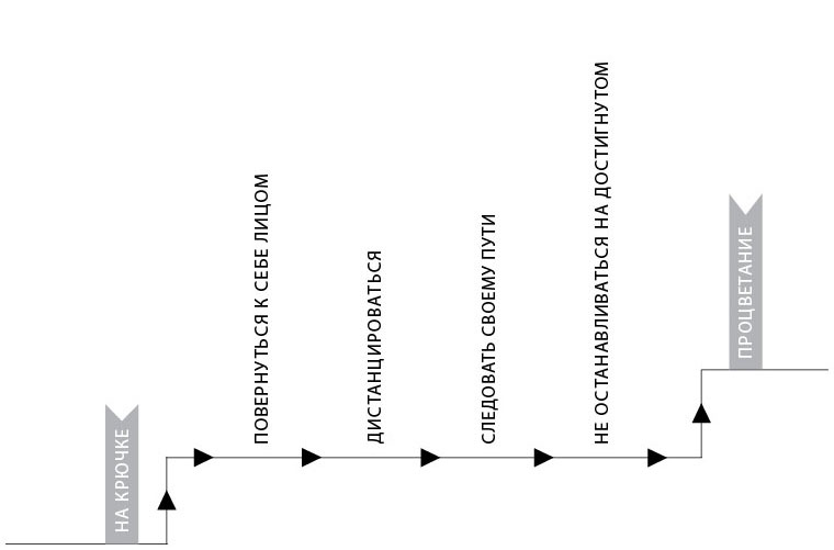 Итак, вы разложили по полочкам и успокоили свои ментальные процессы и создали необходимый промежуток между собой и своими мыслями. Теперь можно сосредоточиться на том, что на самом деле образует вашу личность, – на основополагающих ценностях и главных целях. Когда мы выявляем в себе пугающие, болезненные или деструктивные эмоциональные переживания и признаем их, а затем отстраняемся от них, мы получаем возможность задействовать ту часть себя, которая смотрит в будущее – интегрирует наше мышление и эмоции с долгосрочными целями и желаниями и помогает найти новые, более удачные способы их реализовать.