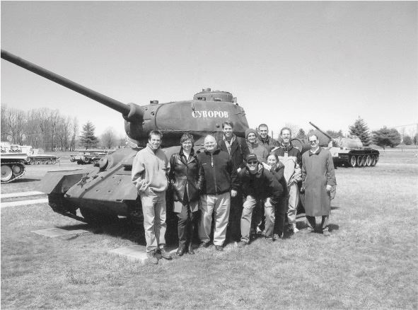 Рис. 1. На Абердинском испытательном полигоне весной 2004 г. с группой аспирантов, посещавших мой курс в том семестре. Слева направо: Кристофер Джонс, я и доктор Уильям Этуотер; на заднем плане: Эрик Хинц, Перрин Селкер, Дэймон Ярнелл, Роджер Тернер и Мэтт Херш; пригнулись: Дэниел Федер и Коринна Шломбс. Фото автора