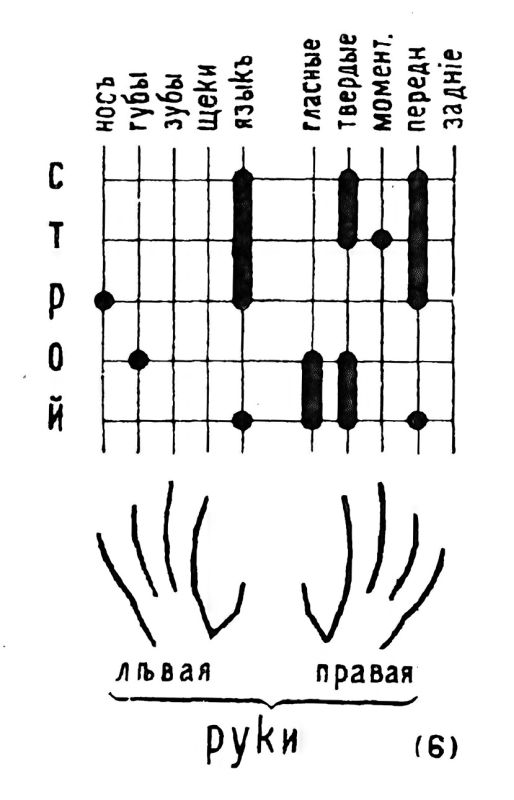 Линцбах ставит задачу разработки системы нотации, которая соответствовала бы жесту как месту происхождения языка. Уже в 1901 году Линцбах публикует пособие о том, как освоить стенографию за два дня, и годы спустя он вновь обращается к основной идее этого сочинения. Стенографический метод Линцбаха основан на применении к языку и письму концепта золотого сечения, которому соответствует строение руки. Так, по Линцбаху, три фаланги пальцев (за исключением большого) находятся друг к другу в отношении золотого сечения. Буквы предлагаемого алфавита стенографии также можно систематизировать согласно этому математическому идеалу красоты, и в результате они оказываются каллиграфией[58]. Но ведь речь идет о скоростном письме, которое, в отличие от имеющихся систем стенографии, не пользуется элизией и другими приемами сокращения, но обеспечивает полную запись информации со скоростью речи. Решение этой задачи состоит, по Линцбаху, в органическом аналогизировании письма и речи: если в процессе говорения задействованы многие органы (легкие, нёбо, губы, язык, голосовые связки, зубы, гортань и т. д.), то и в процессе письма нельзя ограничиваться только одним пальцем или небольшим их количеством. В обычных же графических системах записи «пишущий должен работать, в сущности, лишь одним указательным пальцем, ибо все другие пальцы служат только для держания пера. Он должен работать здесь к тому же только кончиком этого пальца, царапая отдельные буквы пером, являющимся как бы подобием ногтя»[59]. Для реформирования этой редукционистской модели нотации следует в процессе письма активировать все пальцы и создать десятипальцевую систему письма и шрифта, которую Линцбах называет «многопалое письмо» (см. ил. 3 и 4). Если сконструировать пишущую машинку с десятью клавишами, которые соответствовали бы не буквам, а различным органам речи и формам их артикуляции, то появился бы инструмент, позволяющий сделать процессы говорения и записи симультанными. По клавишам такой машинки пальцы двигались бы «как конечности при беге или скачке»[60].